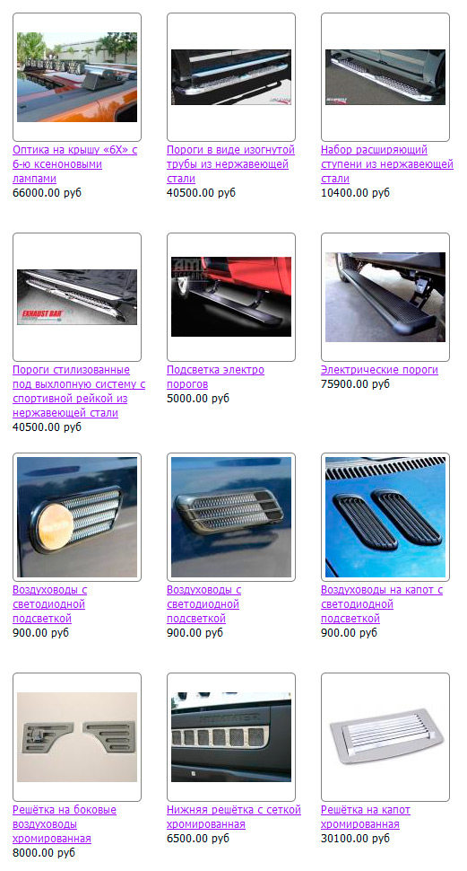 Установка навигации (карт России) Установка мультимедиа Подключение звука и видео к штатным системам Анализ и настройка звука штатной системы с использованием измерительной аппаратуры Установка спутниковых систем слежения Установка громкой связи Установка техноблоков Режим драйв (просмотр TV на ходу) Подключение камеры заднего хода к штатным системам Установка игровых приставок в штатные мониторы Радиомаячки Тюнинг ходовой части Установка суспеншн лифт Установка бади лифт Установка аэролифт Установка пневмоподвески Установка навесного оборудования Установка ксенон Перетяжка салонов